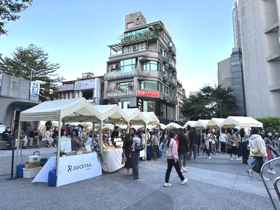 台湾の若者が集まる広場で、小綺麗な市(マーケット)が
