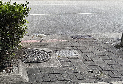 バイクがやって来たので、しらさぎは逃げて行きました。