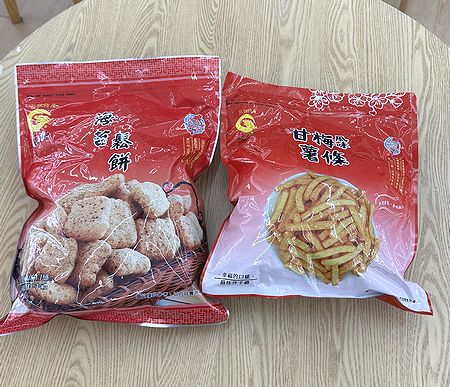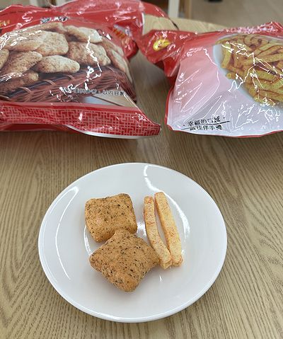 スタッフが台湾の北東部、苗栗のスナック菓子を