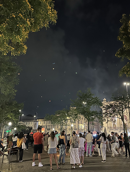 空に舞い上がった沢山のランタン(初めは星かな?と思いました)。
