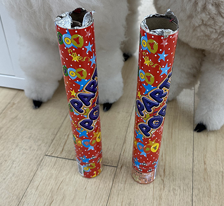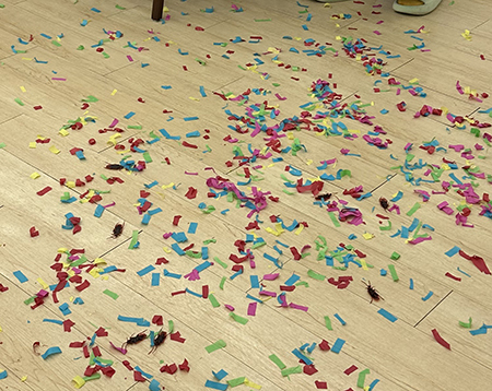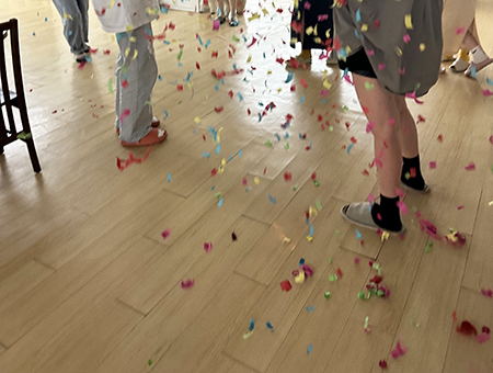スタッフは、いたずら好きが多くて、紙吹雪の中に、