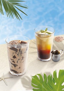 主役のドリンクは二つです。一つは既に写真があるカフェトニック。もう一つは今年の新作メニュー、黒糖コーヒーゼリーのミルクコーヒーです。写真撮影は、コロナ禍のせいもあり、新メニューのみ、キリヌキの撮影を出来るだけ短時間で少人数で行うことになりました。いつものような背景や小物を用意してのイメージ撮影は行えません。