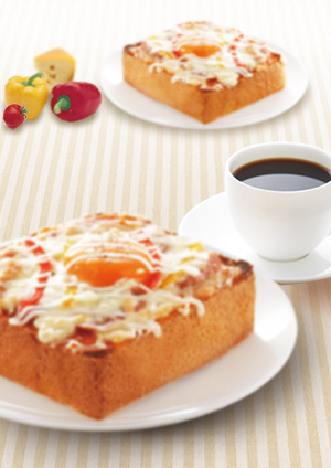 咖啡是從過往拍攝的圖片中找到角度符合的素材,調整明暗與陰影的位置並合成。後方略為模糊的披薩吐司跟前方是同一張圖,只是經過左右翻轉。左上方的彩椒與起司也是從素材圖庫中找出來合成的。