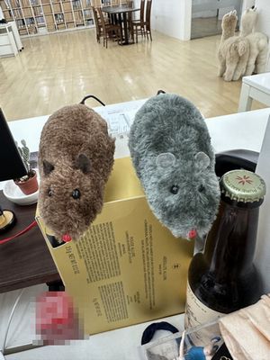 別のスタッフの机に置いてあった、ネズミのおもちゃに