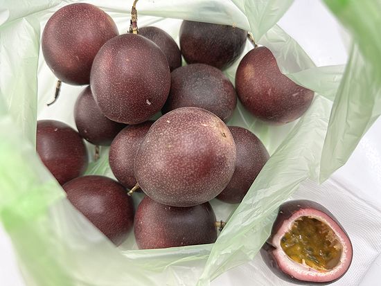 近所の果物屋でパッションフルーツが大量に