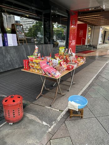 儀式が終わったら、袋詰め。スタッフでお供え物を