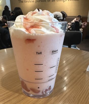 季節限定の「白桃と桜わらびもちフラペチーノ」。