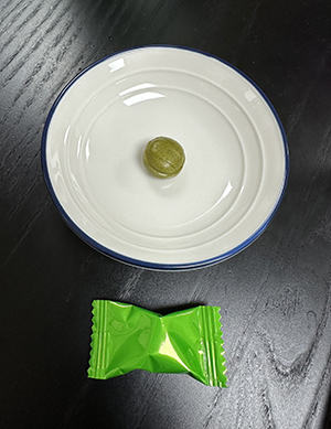 中には丸いうすーい綺麗な緑の飴が入っていました。