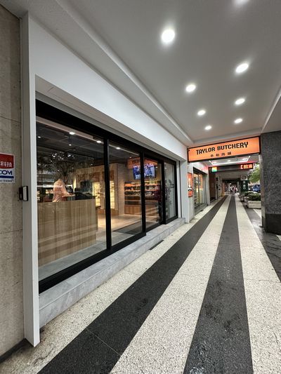 裏に牛肉を食べられる簡単なテーブルが並んで